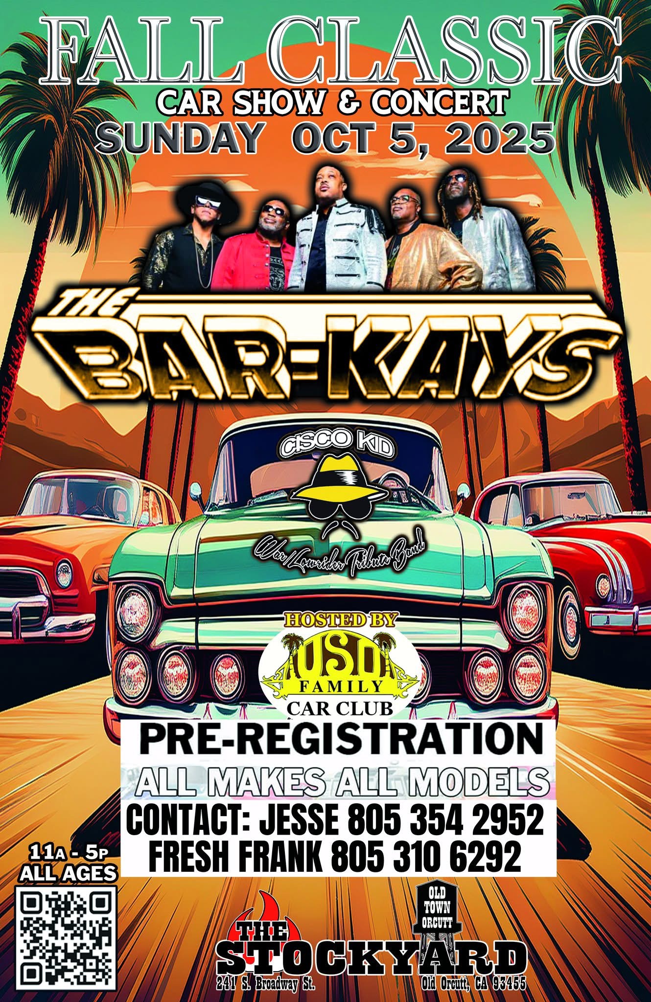 CISCO KID ....... made up of the Bay Areas top musicians led by Recording Artist Drummer/ Vocalist "Joey Jam" Flores, who's band members, including him, have played with The Temptations, Joe Luis Walker, Smash Mouth, Edwin Star, Al Green just to name a few will be taking you down memory lane with all the TOP HITS of the Legendary Band WAR/LOWRIDER...... such as Me and My Baby Brother, Why Can't We Be Friends, Cinco de Mayo, Don't Let Know One Get You Down, Lowrider and of course CISCO KID.